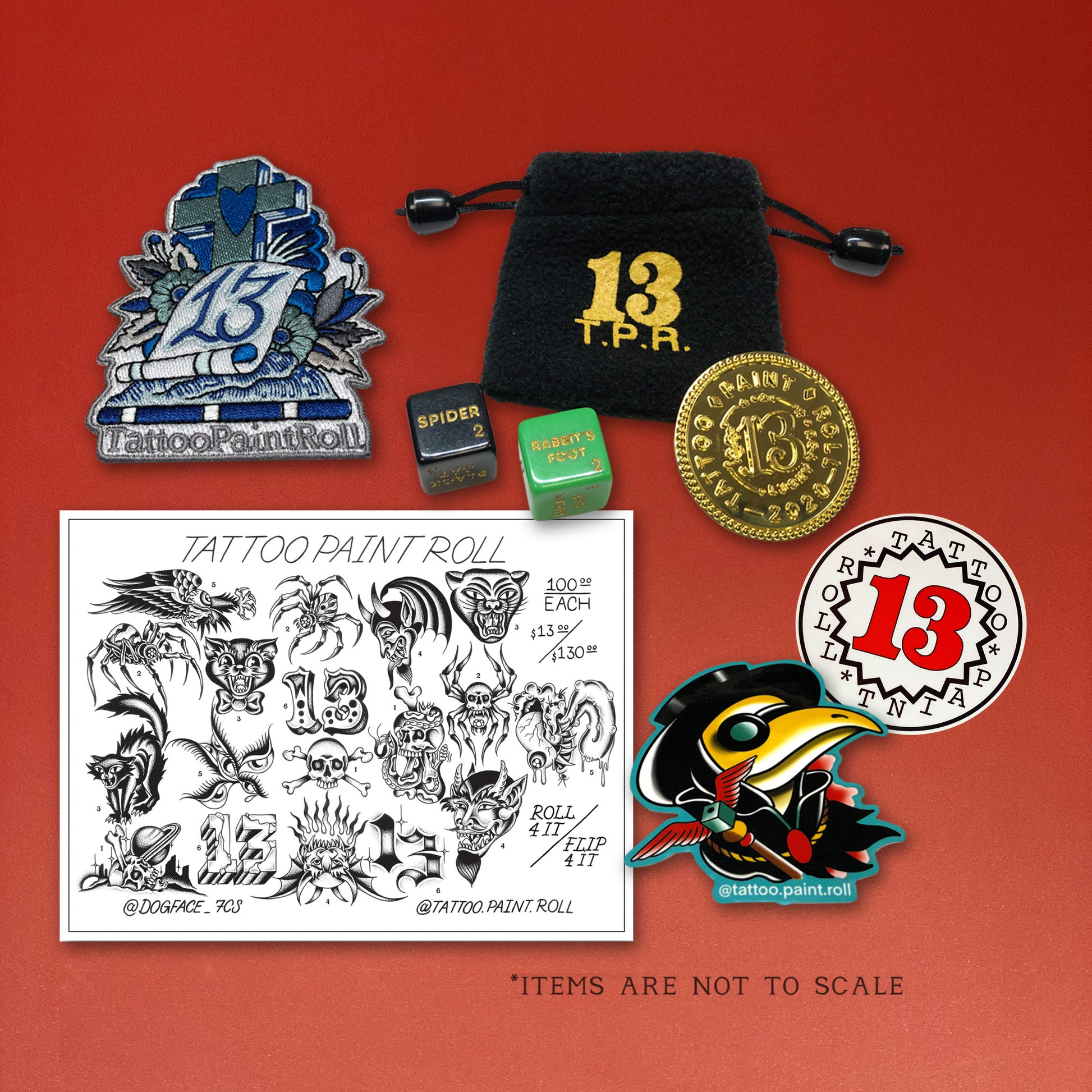 💀 The TPR 13 dice + flash sheet combo shows one of the many ways to use your Tattoo Paint Roll dice—pairing dice and flash sheets to spark ideas and give clients a fun, interactive way to let fate decide their next tattoo. This simple format makes the tattoo experience unforgettable while fueling your creativity for new designs and flash sheets.
